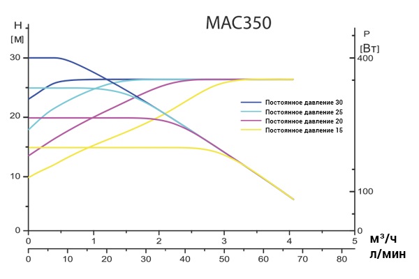 Гидравлические характеристики насосной станции MAC 350